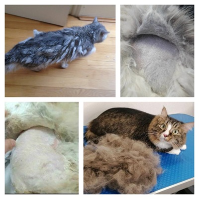 - В попытках избавиться от колтунов самостоятельно, кошка